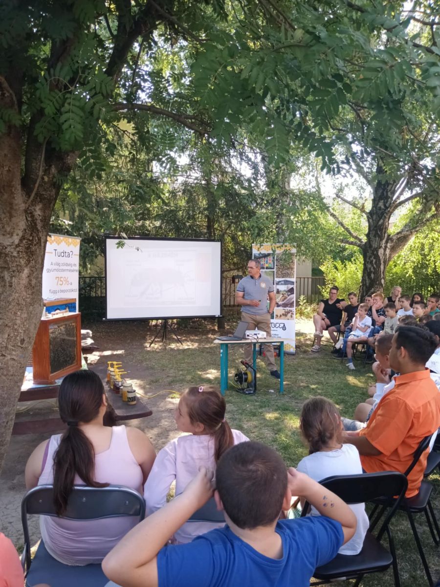 Véget ért a "Szárnyalunk!" Földön, vízben, levegőben című projekt. Szülők és társak bevonásával ért véget idei pályázatunk, amit a Nemzeti Tehetség Program tamogatasából a Kulturális és Innováviós Minisztérium àltal kiírt forrásból valósítottunk meg. A projektzáró rendezvény, ami egyben az elkészült magaságyás felavatása is volt, dallal és egy zeneszàmmal indult, majd May Gábor az OMME Baranya Vármegyei mehészeti szaktanácsadója tartott a méhek fontosságáról előadást, amit geoláda kereséssel egybekötött akadályverseny követett. A tartalmas program végén pedig zöldfűszeres burgonyát kóstolhattak a részt vevők. Tartalmas projektet valósítottunk meg, amiben elfáradtunk, de mindenki jól étezte magát. Tóthné Csatahelyi Gyöngyi